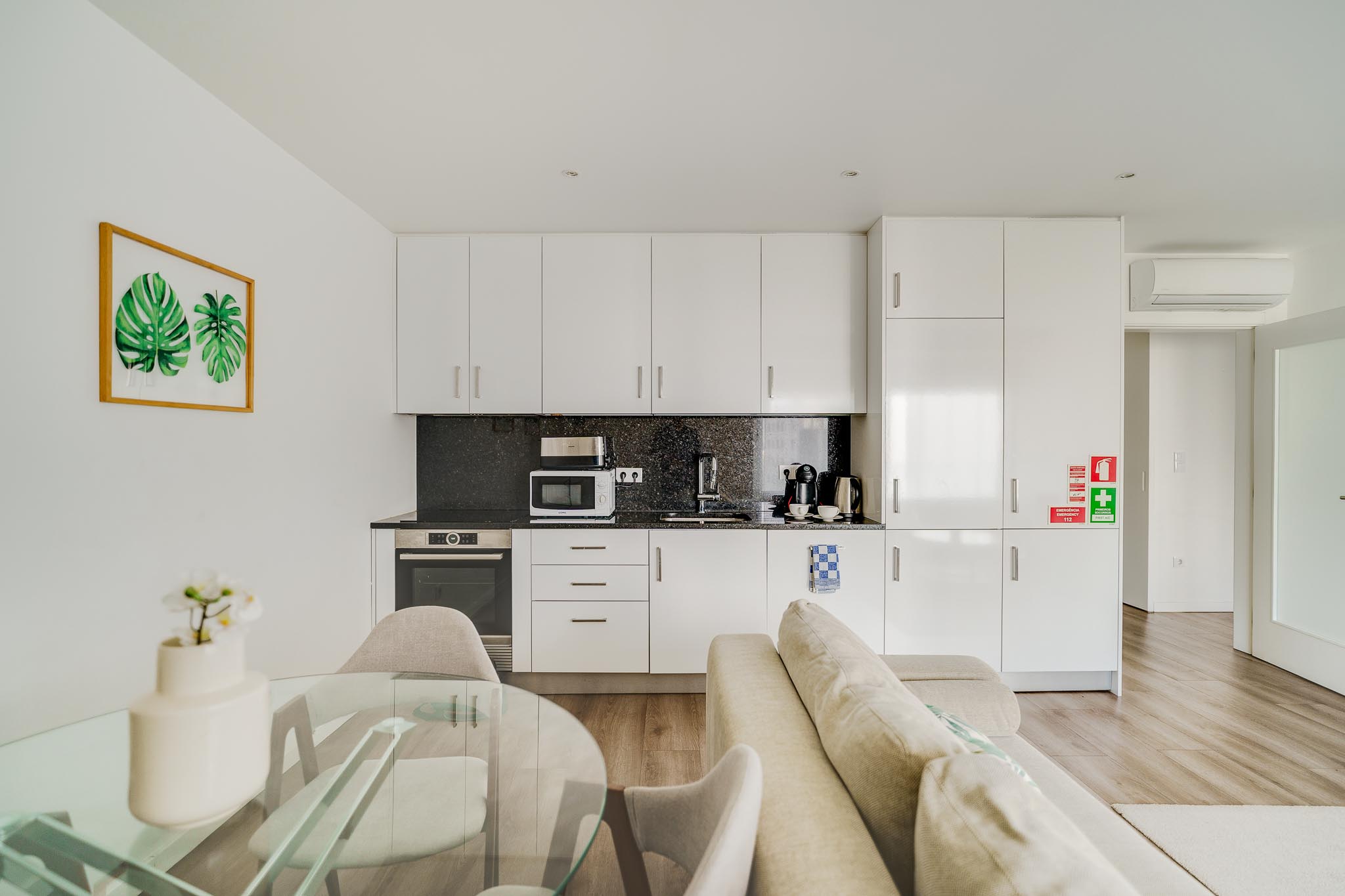 With a bright, modern décor, this Lisbon apartment hosts up to four guests – making it the perfect place for a family holiday. The living room has a sofa bed, a TV, and air conditioning, and the kitchen has essential appliances (such as a stove, fridge, coffee machine, washer and dryer, etc.) so you can prepare your meals at home. There is also a double bedroom with air conditioning and a bathroom. Last but not least, at your disposal, you’ll have a parking space to store your car.
